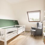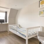 Op de eerste verdieping zijn drie slaapkamers waarvan de twee slaapkamers aan de achterzijde zijn voorzien van een Velux-dakraam en de slaapkamer aan de voorzijde een Frans balkon heeft.