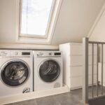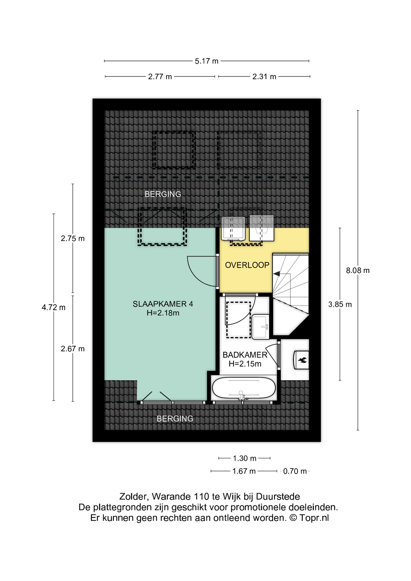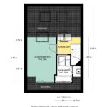 Middels de vaste trap is de voorzolder bereikbaar met Velux-dakraam en de opstellingsplaats voor het witgoed.