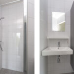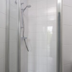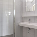 - Complete badkamer met douche, douchescherm, wastafel en badkamerkast