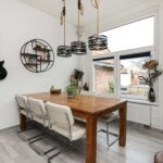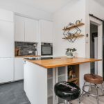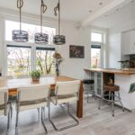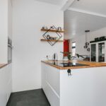 De keuken is in 2022 gerenoveerd. Deze is voorzien van een inductie kookplaat met geïntegreerde afzuiging, oven, koel-vriescombinatie en een vaatwasser. De mat witte kastjes in combinatie met het houten aanrechtblad zorgen voor een mooie en warme uitstraling, waar je gezellig kan plaatsnemen aan de bar met een drankje. Door de handige indeling is er voldoende kast- en werkruimte. Fijn is dat er voldoende ruimte is om een grote eettafel te plaatsen bij de keuken.