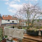 Vanuit de keuken bereik je het zonnige balkon op het zuiden met een vrij uitzicht over de tuinen van het wijk. Een heerlijke plek om te genieten van het zonnetje.