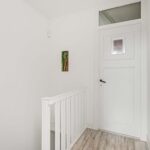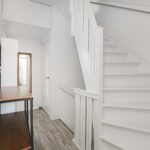 Via de opvallend gekleurde voordeur kom je in de hal met vernieuwde meterkast en de trapopgang naar de eerste verdieping.