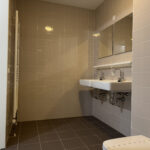 - Badkamer met dubbele wastafel, inloopdouche en (tweede) toilet.
