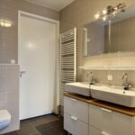 Het appartement beschikt over drie volwaardige slaapkamers, allemaal voorzien van een Frans balkon voor extra licht en ventilatie. De moderne badkamer is ingericht met een inloopdouche met glazen wand, dubbele wastafel, zwevend toilet, handdoekenradiator en een te openen raam voor natuurlijke ventilatie. In de hal bevinden zich tevens een separate toiletruimte met fonteintje en een praktische inpandige berging met aansluiting voor de wasmachine.