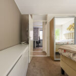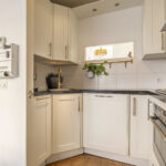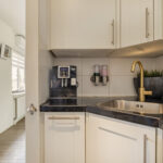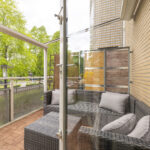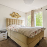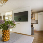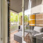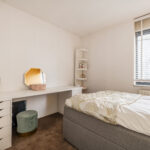 Vanuit de overloop heb je toegang tot de ruime en lichte woonkamer, waar je volop mogelijkheden hebt om een comfortabele zithoek én een royale eettafel te plaatsen. Dankzij de slimme indeling en grote raampartijen voelt de woonkamer open en uitnodigend aan. De parketvloer geeft de ruimte een warme uitstraling en de wanden zijn afgewerkt met strak glasvliesbehang. Vanuit de woonkamer stap je zo het balkon op, waar je een prachtig uitzicht hebt over de vijver van Emiclaer. Hier geniet je van rust en privacy, terwijl het zonnescherm en de screens zorgen voor dat ook het op warme dagen goed vertoeven is. De halfopen keuken is voorzien van een natuurstenen werkblad en diverse inbouwapparatuur: 5-pits gaskookplaat, afzuigkap, combi-oven, vaatwasser, koelkast en vriezer. De aluminium schuiframen zijn voorzien van dubbel glas en handbediende rolluiken.