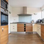 Aan de achterzijde van de woning is de keuken gesitueerd. Deze is voorzien van een granieten aanrechtblad, plintverwarming en diverse inbouwapparatuur waaronder 5-pits gaskookplaat, oven, teppanyaki plaat, RVS-afzuigkap en losse koel-/ vriescombinatie.