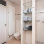 De badkamer is voorzien van een inloopdouche met thermostaatkraan, dubbele wastafel met bijbehorend meubel, hangend closet, verlaagd plafond met spotjes en designradiator.