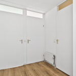 De woonkamer bevindt zich op de begane grond en vormt een lichte, aangename leefruimte. Dankzij de schuifpui naar de tuin valt er veel daglicht naar binnen. Er is plek voor een gezellige zithoek en eethoek en de ruimte beschikt over een vaste kast.