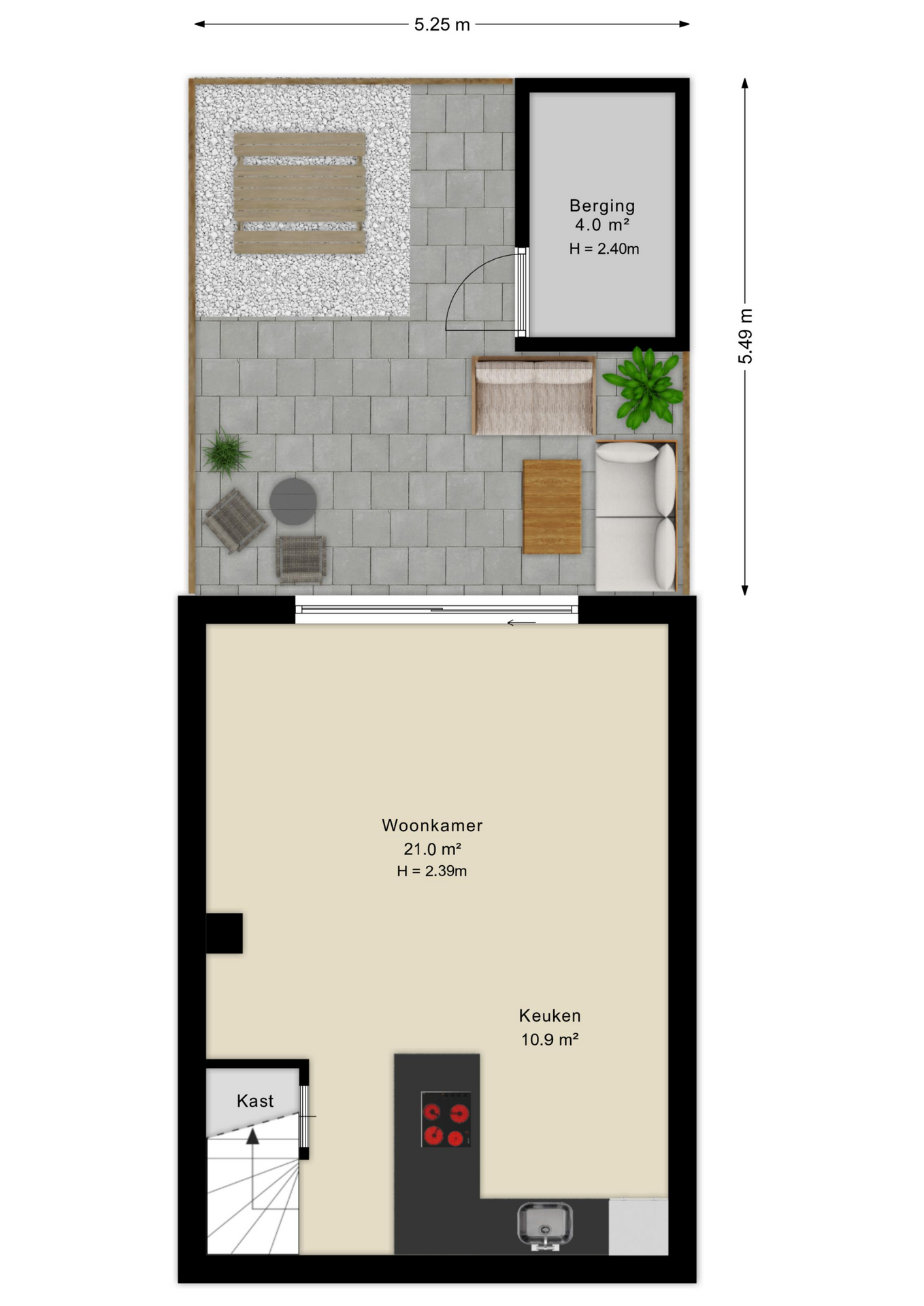 • Veel lichtinval door schuifpui;