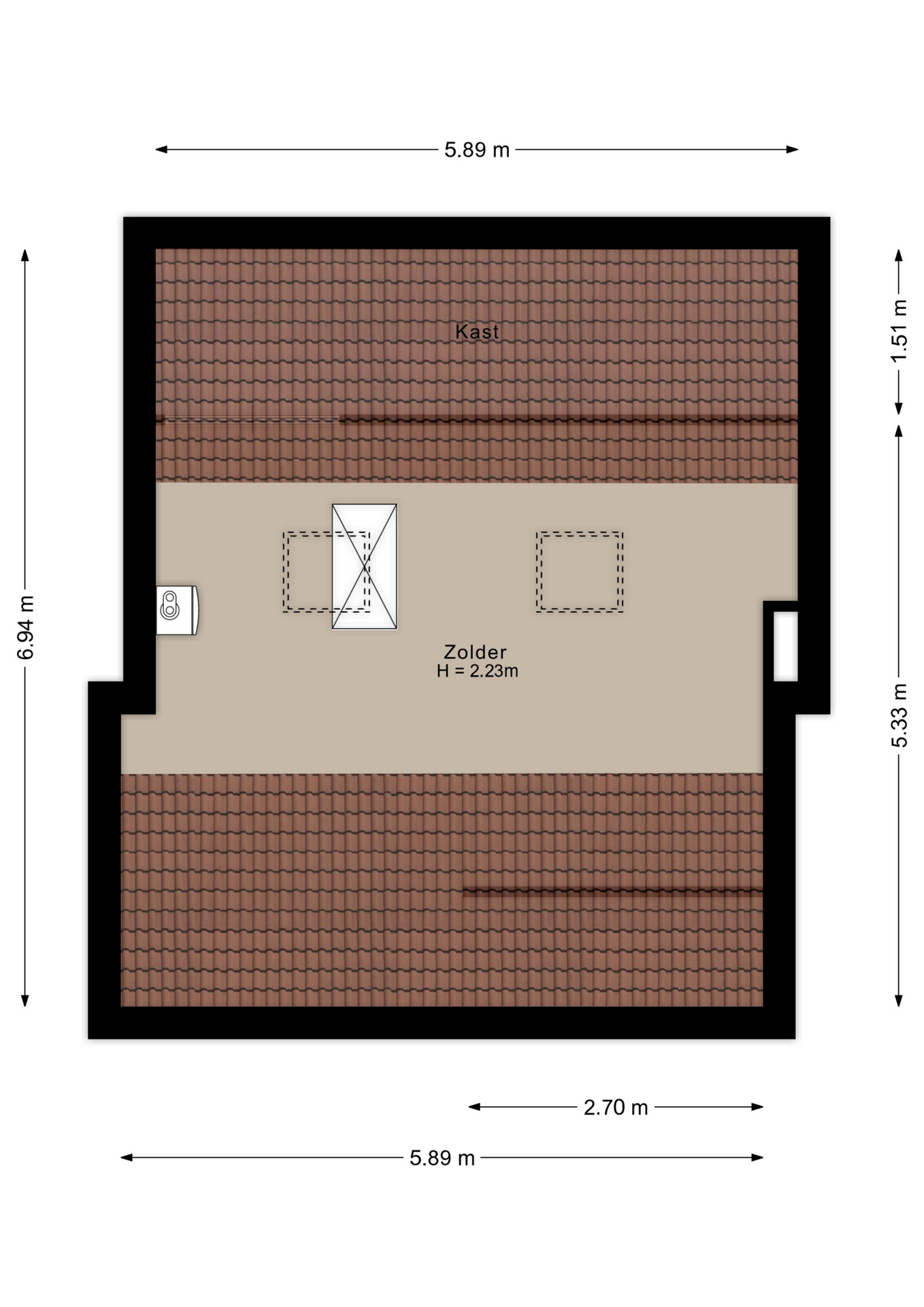 - Ruime zolder met twee dakramen, volop mogelijkheden.