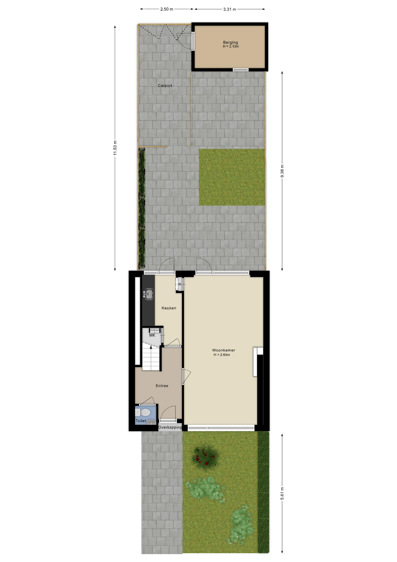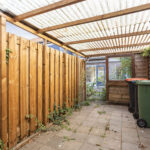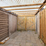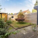 - Diepe achtertuin op het zuidwesten met achterom en berging.