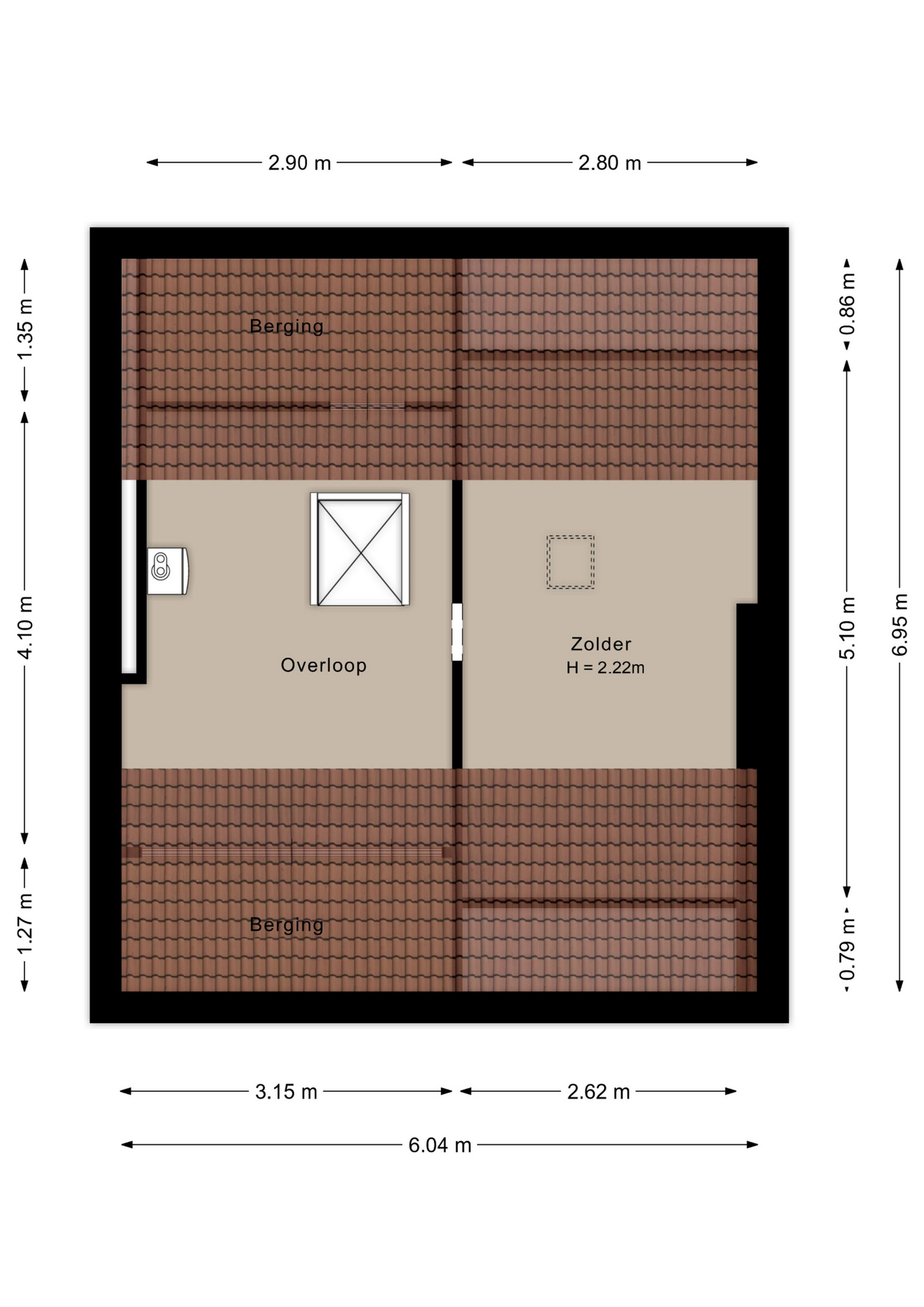- Ruime zolder met een dakraam, volop mogelijkheden.