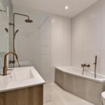 Hier vind je nog een tweetal goed bemeten slaapkamers, de moderne badkamer is voorzien van een bad, douche en wastafel en is in 2022 volledig vernieuwd. Tevens is hier een aparte ruimte voor een wasmachine, CV-ketel en de mechanische ventilatie.