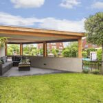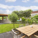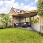 - Achtertuin met veranda, elektrisch screen en achterom.