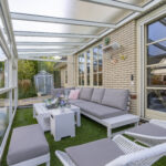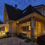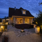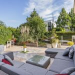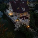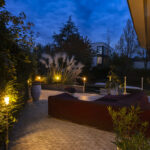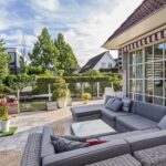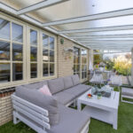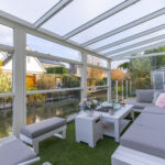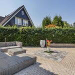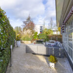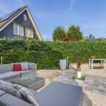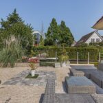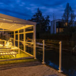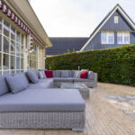 Door de vrije ligging kijk je hier prachtig weg over de tuin en het water. Het is een ideale ruimte voor zowel ontspannen avonden als uitgebreide diners; een grote eettafel en een royale zithoek passen hier moeiteloos.