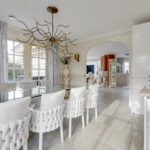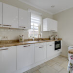 Aansluitend bevindt zich de moderne open keuken (2021), uitgevoerd in een lichte en tijdloze kleurstelling met hoogwaardige materialen.