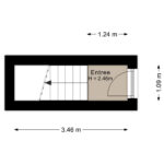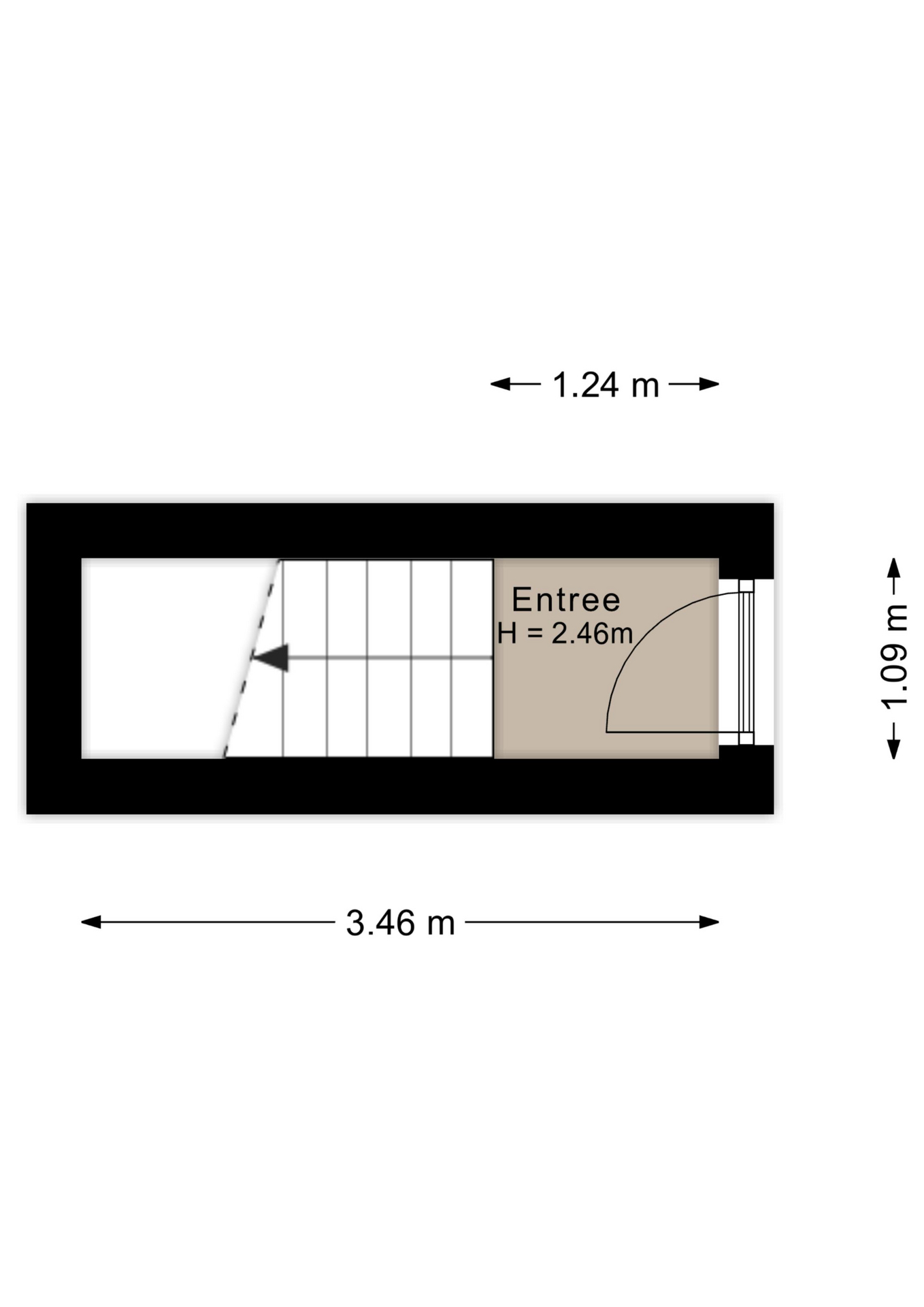Hier bevindt zich de voordeur met de trapopgang naar de woonverdieping.