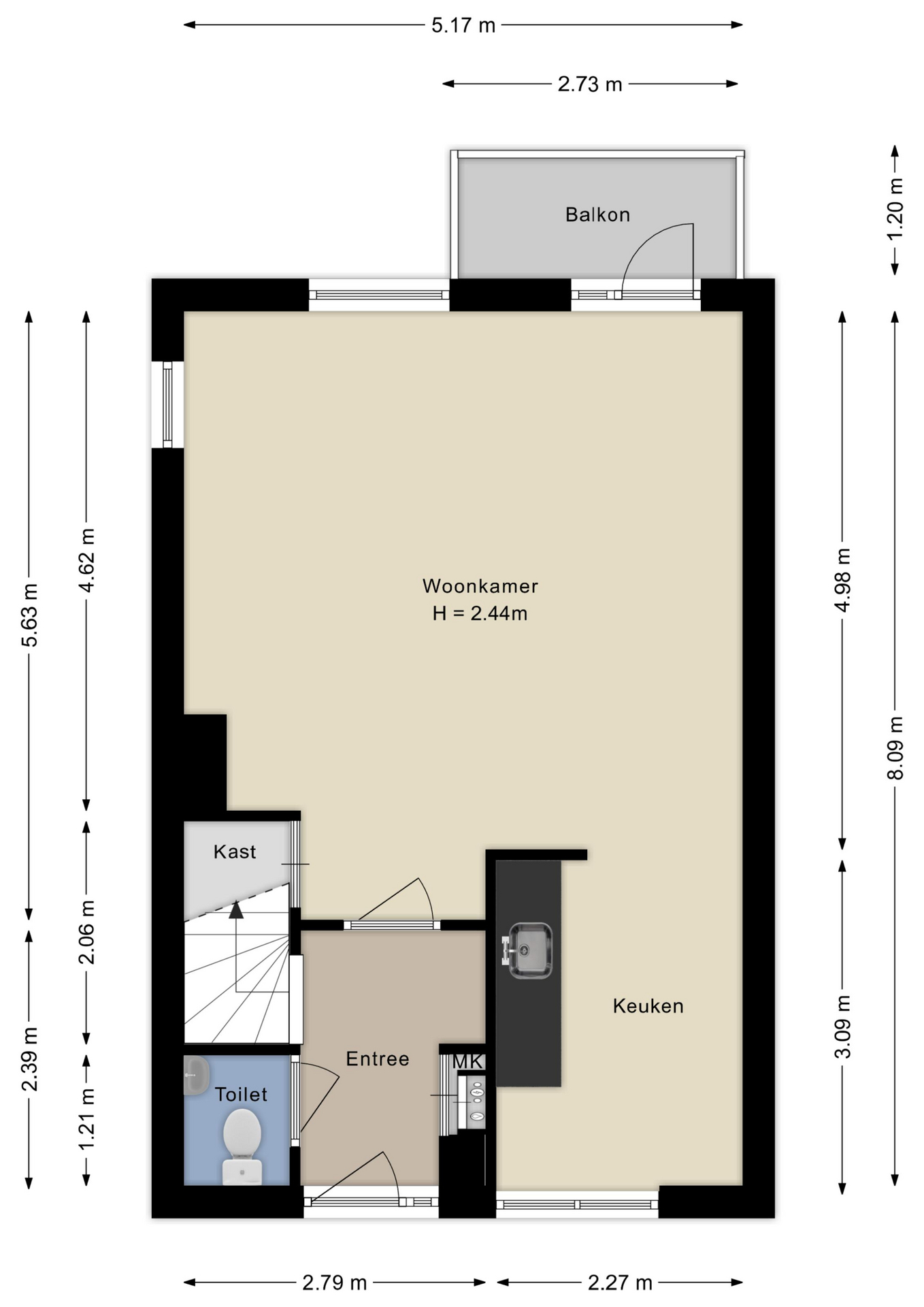 Entree appartement met ruime, lichte hal voorzien van toiletruimte met fontein, meterkast en trapopgang. Vanuit de hal toegang tot de royale woonkamer met aansluitend het balkon. Dit balkon ligt op het zuiden, waardoor je hier al vroeg op de dag van de zon kunt genieten. Aan de voorzijde bevindt zich de halfopen keuken.