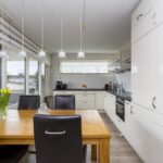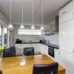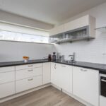 Door de grote raampartijen en de balkondeur wordt de woonkamer voorzien van een rijke lichtinval. De kamer is lekker ruim, voorzien van lichte wanden, en biedt voldoende plek voor een gezellige zithoek. In de aangrenzende keuken is ruimte voor je eethoek; het is ingericht met een groot hoekmeubel in een lichte kleurstelling, en diverse inbouwapparatuur. Je hebt de beschikking over een keramische kookplaat, combi-oven, afzuigkap, koel-/vriescombinatie en vaatwasser. Het meubel wordt afgetopt met een donker composiet werkblad, die je veel werkruimte biedt.