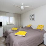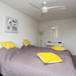 De slaapkamers zijn voorzien van een neutrale afwerking en een prettige lichtinval. De lichte badkamer is volledig betegeld en uitgerust met een douche, een groot wastafelmeubel, een spiegelkast, een hangkast en een hangend toilet.