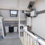 Overloop met wasmachine-aansluiting en CV opstelling. Ook bevindt zich op deze verdieping een mogelijke 4e slaapkamer met dakraam. Er is veel opbergruimte onder de schuine daken.