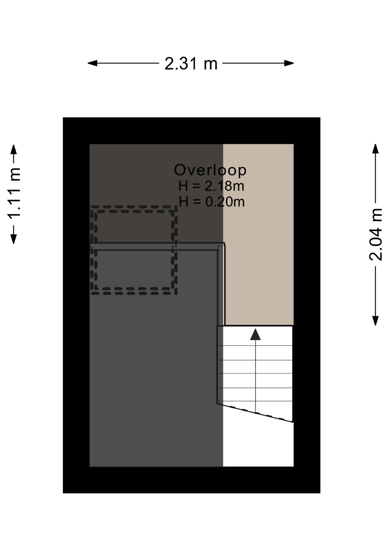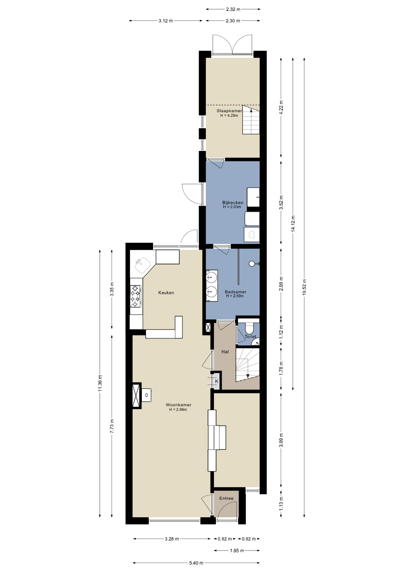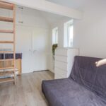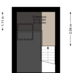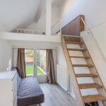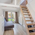 Er is grotendeels sprake van een vide met hoogte tot in de nok; deels is de ruimte boven te gebruiken als slaapgedeelte of berging.