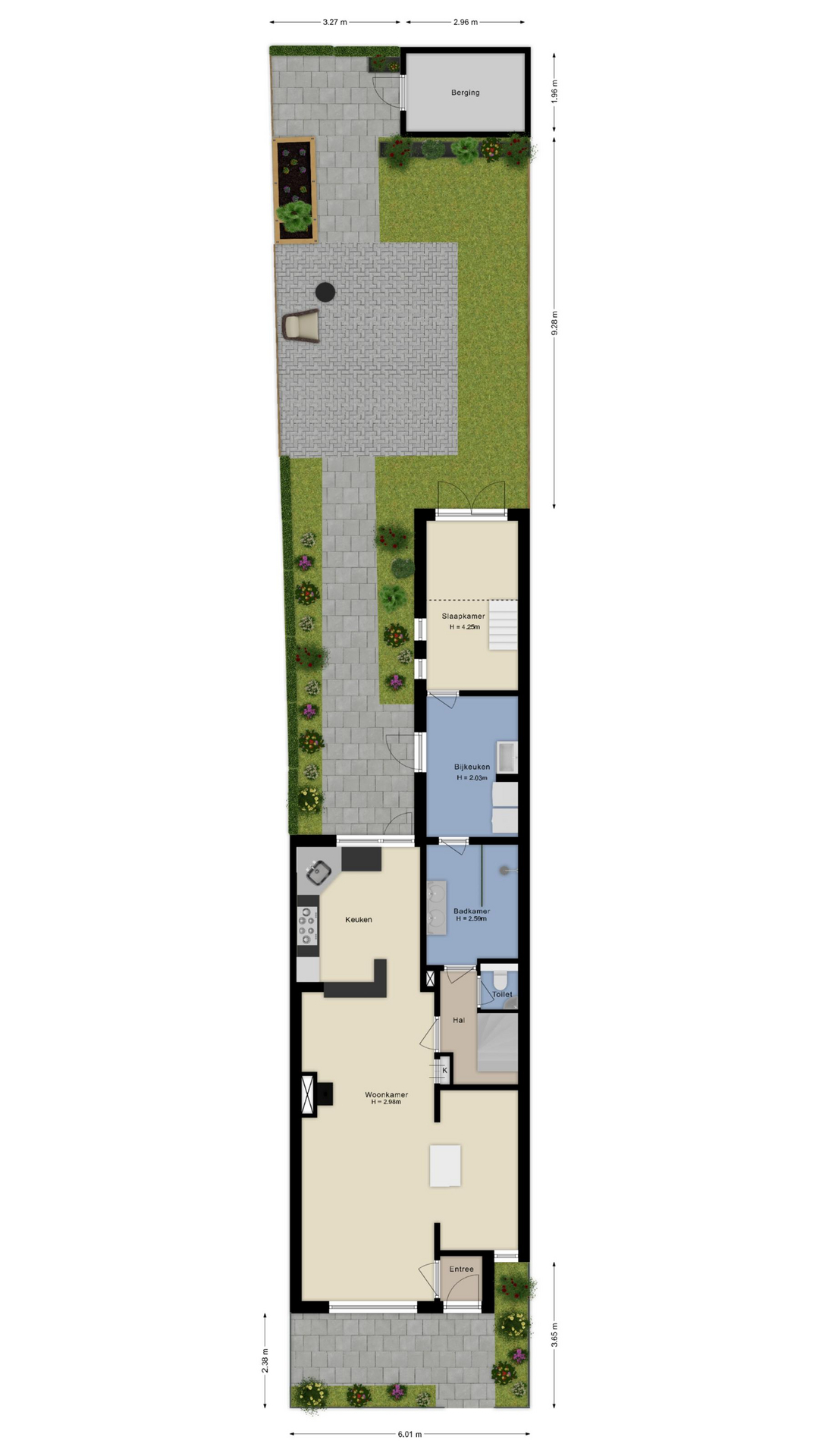 - Diepe tuin met eigen achteringang en doorgang naar parkeergelegenheid;