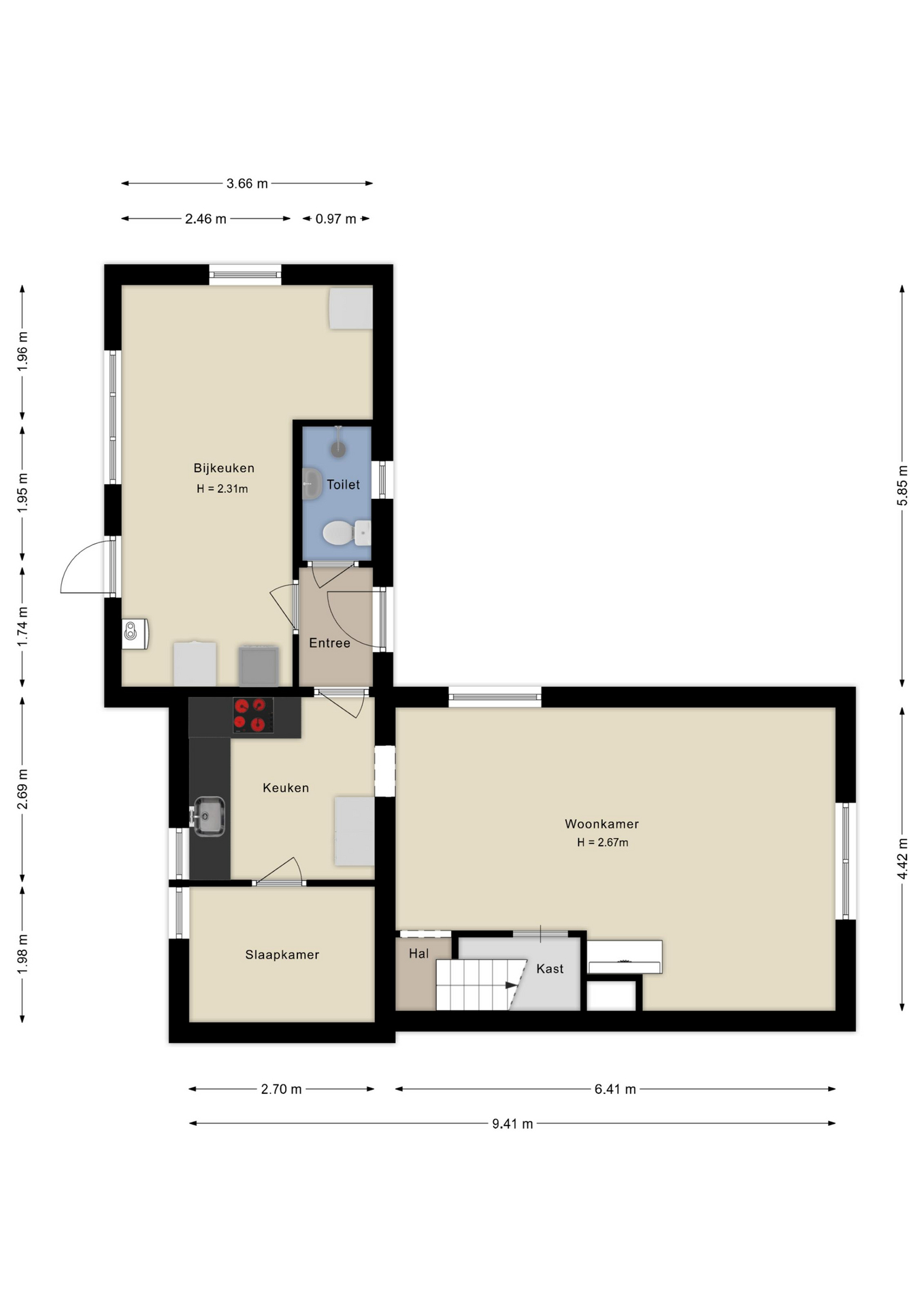 - Woonoppervlakte huidige pand: ca. 94m2;