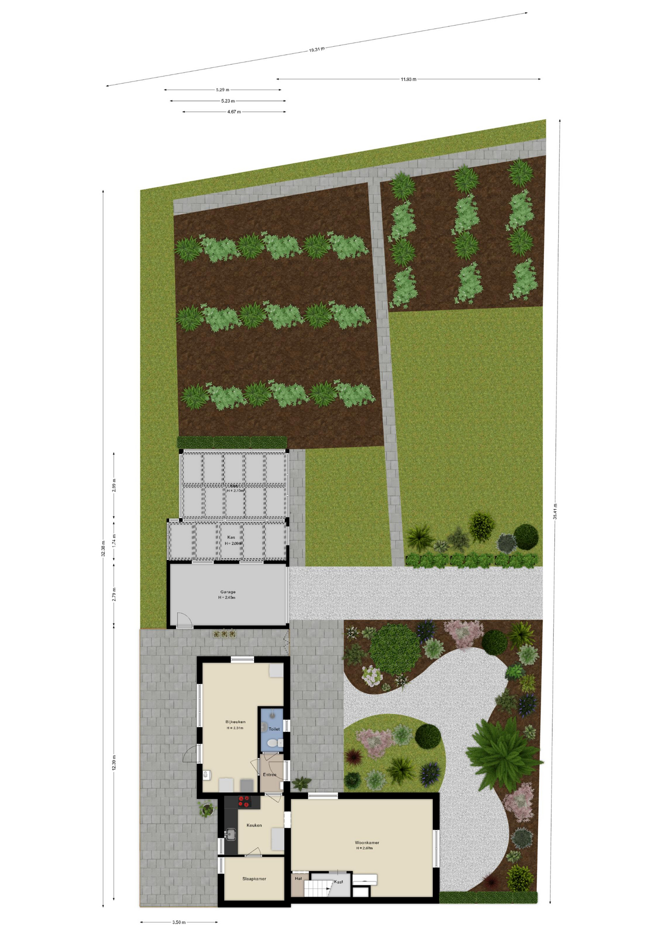 - Oppervlakte vrijstaande stenen garage en kassen: ca. 39m2;