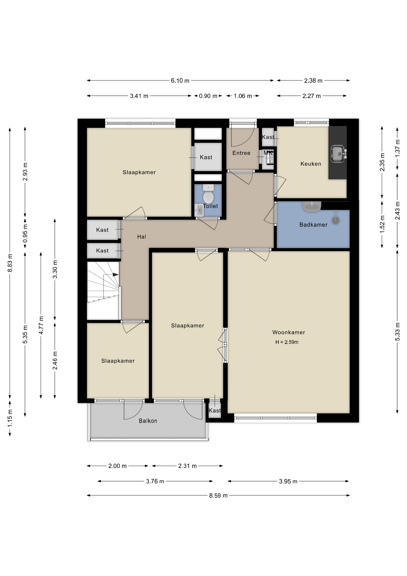 - Appartement is voorzien van dubbelglas (HR++).