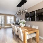De woonkamer is heerlijk licht dankzij de grote ramen en biedt een mooi uitzicht op de ruime achtertuin. Via de achterdeur loop je zo naar buiten en kun je de hele dag door genieten van de zon op verschillende plekken in de tuin. Het vrije uitzicht zorgt voor een gevoel van rust en privacy.
