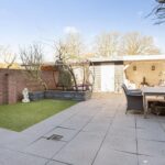 De heerlijke tuin is modern afgewerkt met strakke sierbestrating, kunstgras en borders met vaste beplanting en is uiteraard voorzien van een achterom. De houten schuur heeft een afmeting van ruim 15m2 en is voorzien van elektra.