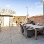 De achtertuin biedt alles wat je maar kunt wensen; royale afmeting (circa 15m. x 8m.), volledig vrije ligging, de gehele dag zon, grote houten schuur en stoere overkapping, compleet met lounge en openhaard!
