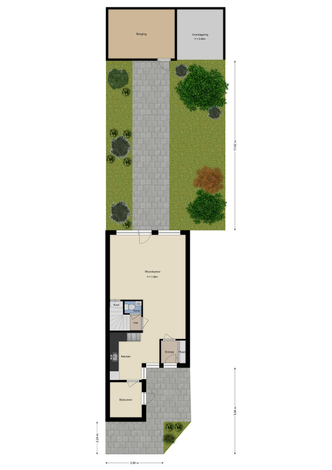 - Het perceel eigen grond heeft een afmeting van 195m2;