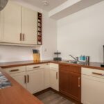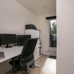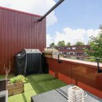 Op de bovenste etage vind je een overloop met ruimte voor een werkplek en toegang tot het zonnige dakterras – een fijne plek om tot rust te komen. De tweede slaapkamer is een prettige ruimte die zich uitstekend leent als kinderkamer, werkkamer of logeerkamer. De badkamer is grotendeels betegeld en beschikt over een douche, een wastafel en tweede toilet. Boven deze kast is een extra opbergkast gecreëerd.