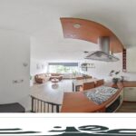 Overloop met toegang tot de lichte woonkamer met grote raampartijen en een nette laminaatvloer. De open keuken in U-opstelling is voorzien van een inductiekookplaat, oven, afzuigkap, vaatwasser en diverse spotjes.