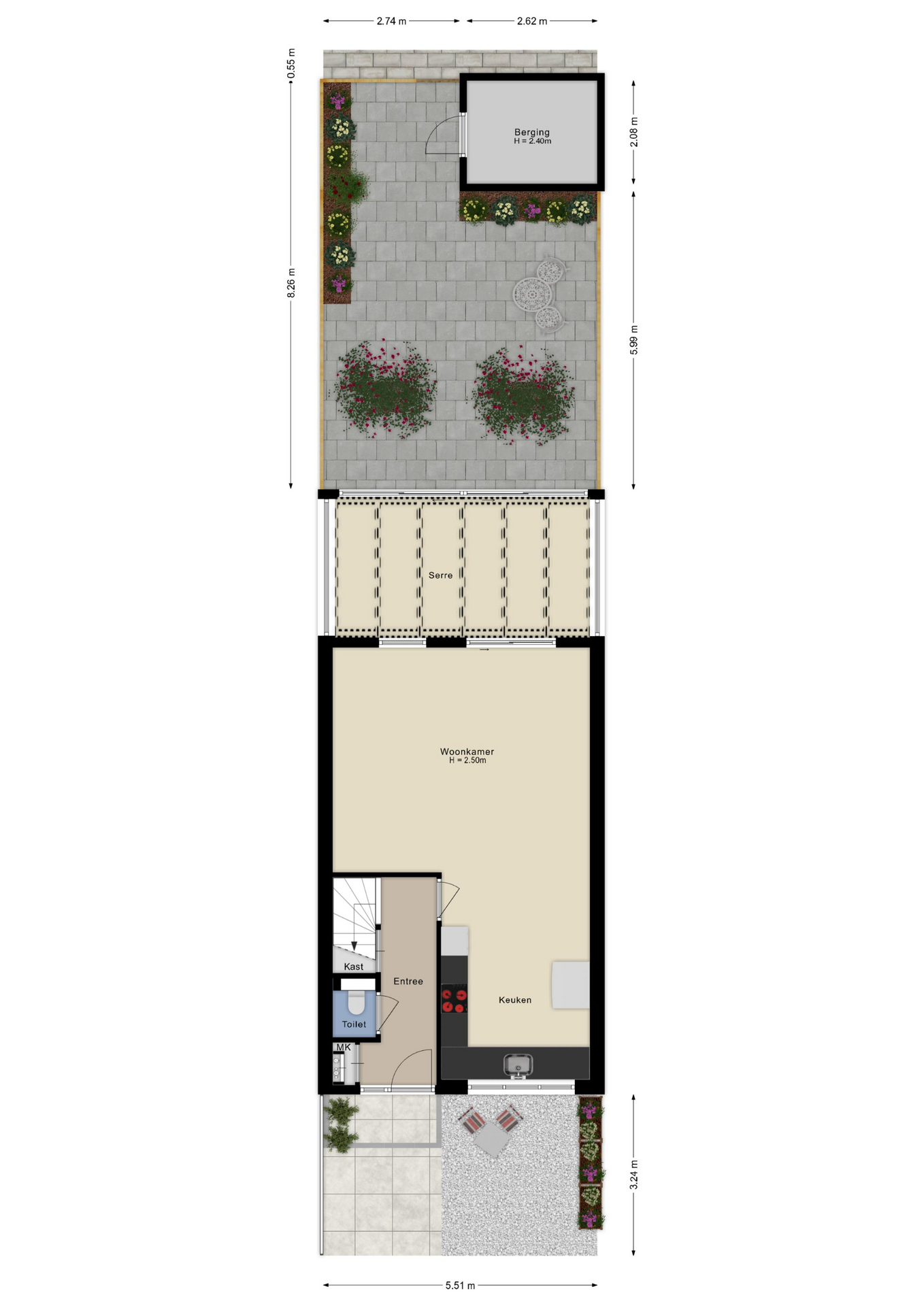 - Extra leefruimte dankzij de lichte serre op de begane grond;