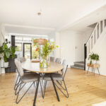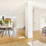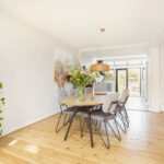 • Mooie houten vloer in woonkamer en tegelvloer in de keuken