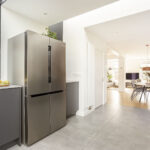 Aan de achterzijde bevindt zich de luxe open keuken, uitgevoerd in een strak modern design en voorzien van diverse inbouwapparatuur. De keuken is bijzonder licht dankzij de grote lichtstraat.
