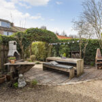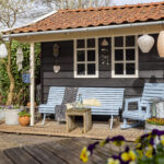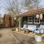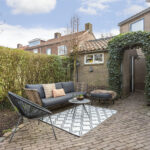 Via de dubbele openslaande deuren loopt u direct de achtertuin in, waardoor binnen en buiten naadloos in elkaar overlopen.