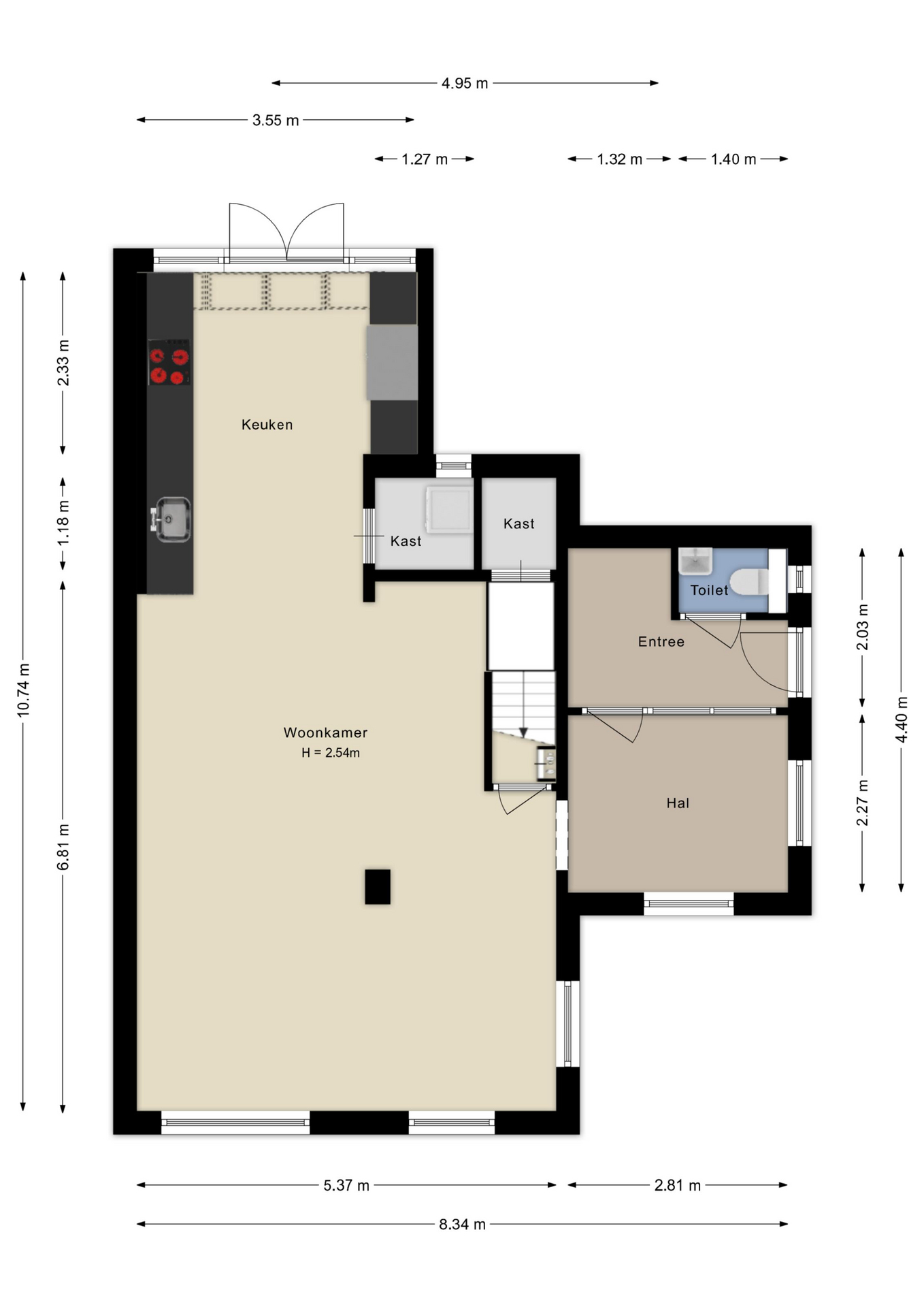 Via de entree bereikt u de hal met toilet en toegang tot de woonkamer.