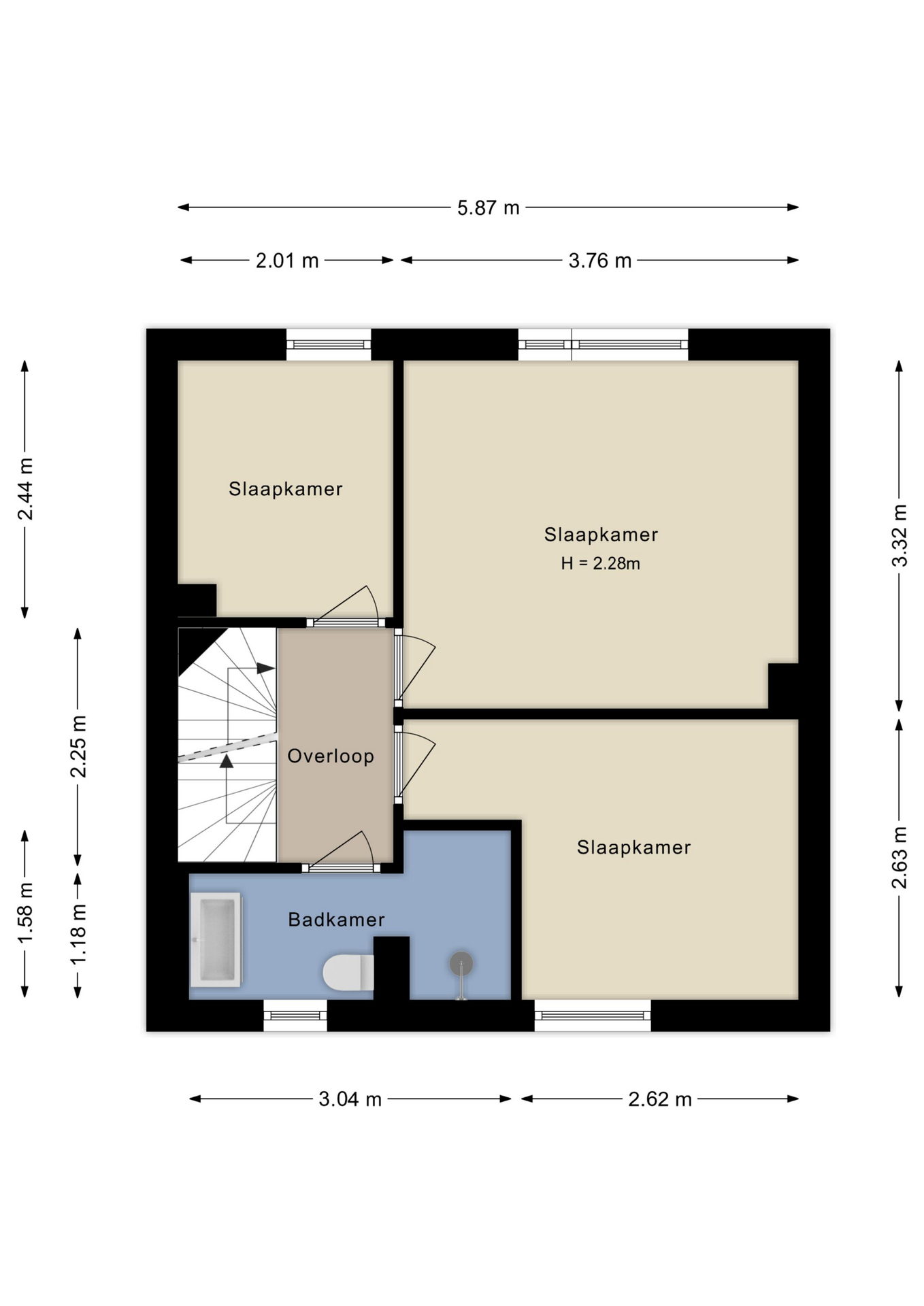Ca. 100 m² bruikbare ruimte (ca. 87 m² Woonoppervlakte + ca. 13 m² zolder)