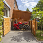 Externe houten berging achter ca. 7 m² + voor ca. 3.5 m²