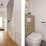 De vaste trap brengt je op de eerste verdieping met overloop. Aan de achterzijde liggen twee royale slaapkamers met vrij uitzicht. Aan de voorzijde bevinden zich een derde (slaap)kamer en de moderne badkamer met inloopdouche, tweede toilet en wastafelmeubel. De 1e verdieping is voorzien van een laminaatvloer.
