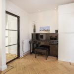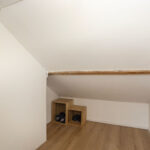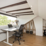 De zolderverdieping is bereikbaar via een vaste trap. Hier kom je op de voorzolder met extra bergruimte, gevolgd door een ruime zolderkamer met een grote dakkapel. Deze ruimte is nu in gebruik als fijne werkkamer. Door de hoogte geldt de zolder officieel niet als verblijfsruimte, maar de circa 13 m² is ideaal in gebruik en levert net die extra vierkante meters, waardoor het totaal uitkomt op 100 m² bruikbare ruimte. Ook de tweede verdieping is voorzien van een laminaatvloer.