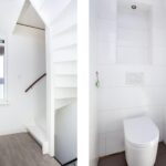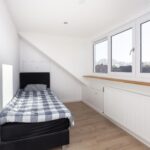 Een vaste trap brengt je op de 2e verdieping; door de grote dakkapel heb je hier veel lichtinval. De open ruimte wordt momenteel gebruikt als slaapkamer, maar er zijn meerdere doeleinden mogelijk. De cv-ketel opstelling is netjes weggewerkt in een bergkast en je hebt een tweede toiletruimte met fontein tot je beschikking. De slaapkamers zijn ruim, lekker licht en tevens voorzien van een nette afwerking en extra opbergruimte achter de knieschotten.