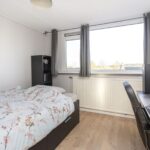 De hal is ruim, licht en voorzien van een toiletruimte. Je krijgt toegang tot de woonkamer en de gesloten keuken. De royale woonkamer is heerlijk licht; er valt veel daglicht binnen door de raampartijen aan weerszijden. De kamer is voorzien van een sfeervolle afwerking; een paneeldeur met glas, een nette radiatorombouw, de wanden zijn glad gestuukt en op de vloer ligt laminaat. Vanuit hier bereik je tevens één van de twee balkons, die je tot je beschikking hebt.