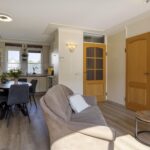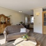 Doordat de woonkamer is voorzien van een brede raampartij richting de achtertuin, is het er heerlijk licht. De woonkamer is voorzien van een fraaie vloer, plafond met sierlijst en trapkast. Aan de voorzijde bevindt zich de open keuken.