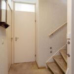 Je betreedt de woning in de hal met nette vloer, plafond met sierlijst, toilet met fonteintje, meterkast, trapopgang en deur richting de woonkamer.
