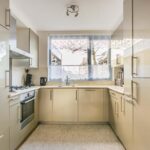 De keuken is aan de voorzijde gesitueerd en is voorzien van een modern keukenblok in U-opstelling met koelkast, vriezer, gaskookplaat, elektrische oven, RVS-afzuigkap, vaatwasser, close-in boiler en veel kast- en werkruimte.